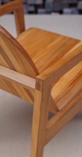 A Poltrona 01 incorpora o compromisso da Bloco Marcenaria com o fazer tradicional de carpintaria e o contemporâneo. A base de ripas de madeira maciça no encosto e no assento revela o domínio dessa técnica.